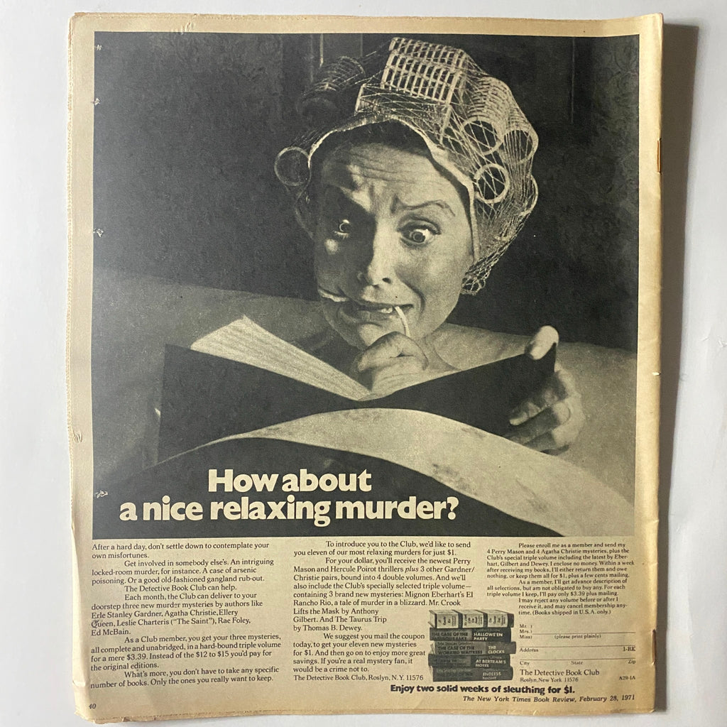 Take a moment to appreciate the thoughtful layout and engaging content that defined the literary world in 1971. Whether you’re a devoted fan of The New York Times or looking to expand your collection, this Book Review is a must-have. Additionally, check out the accompanying image of the magazine's cover below: