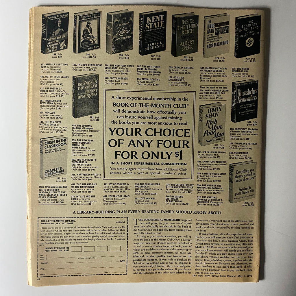 Discover a piece of literary history with "The New York Times Book Review" from May 2, 1971. This publication features "The Saddest Story," an intriguing article that captures the essence of literature during a transformative era. Whether you're a collector or just a fan of vintage publications, this magazine is a must-have addition to your collection.