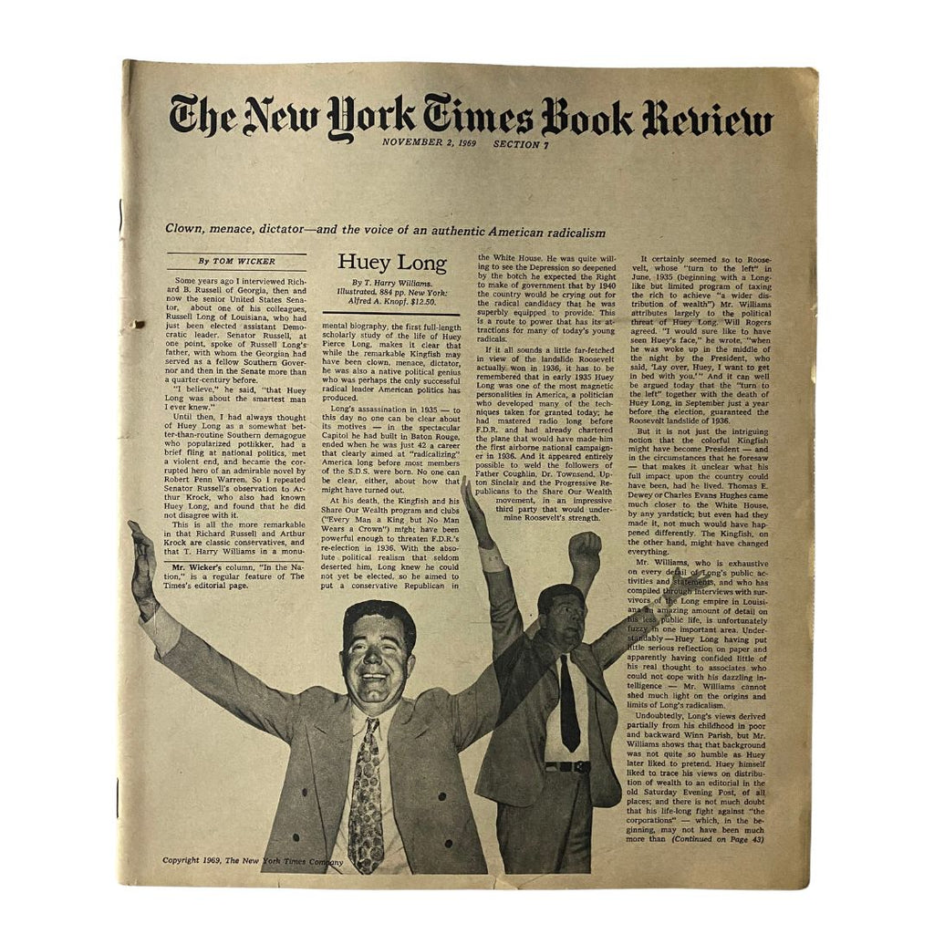 Discover a unique piece of literary history with this original copy of The New York Times Book Review from November 2, 1969, featuring a captivating feature on Huey Long. This vintage publication is a must-have for collectors, historians, or anyone intrigued by the influential figures of American history.