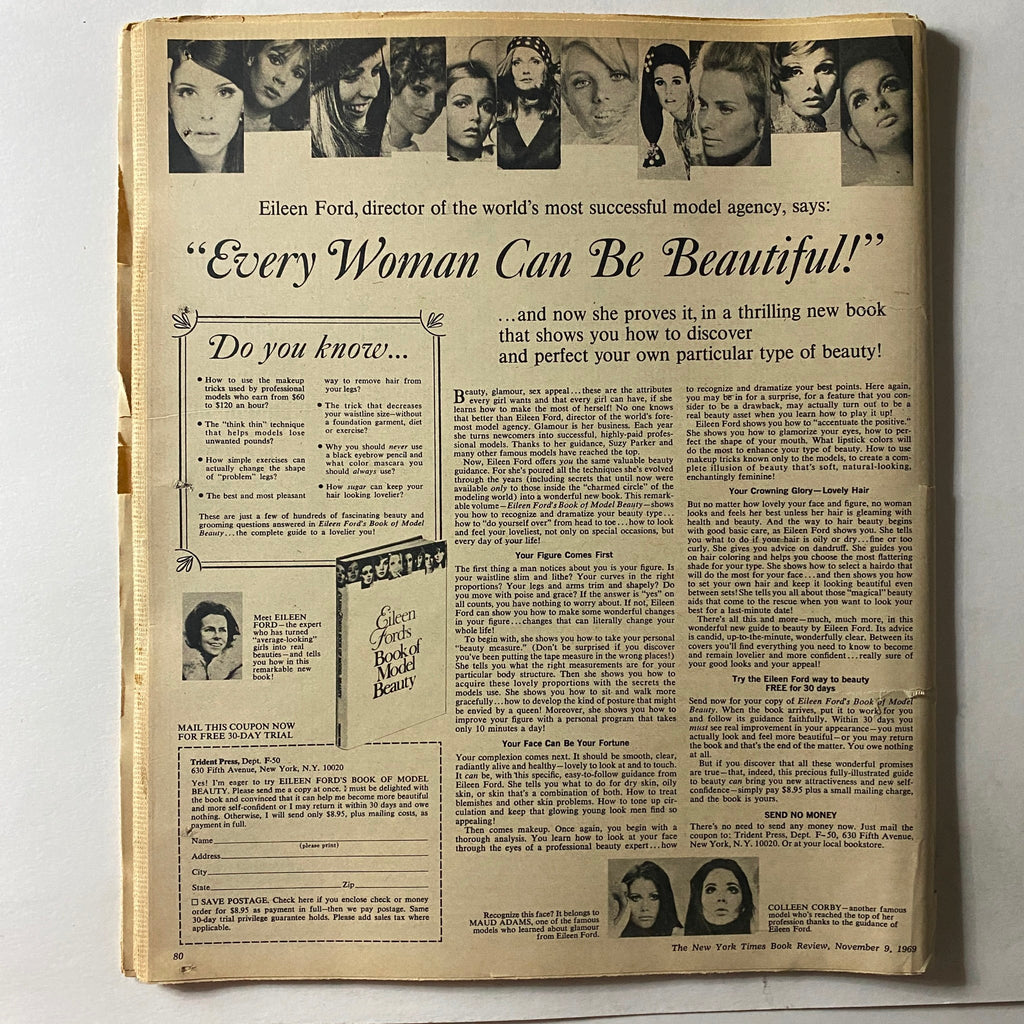 Step back in time and indulge in the literary elegance of "The New York Times Book Review" from November 9, 1969. This edition features the thought-provoking article on French's renowned work, "Lt. Woman." As a collector's item, it offers a glimpse into the literary conversations of the late 60s, showcasing how narratives shaped the culture and society of the time.