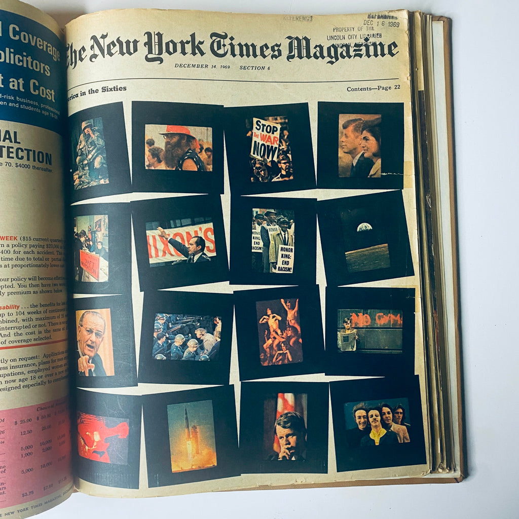 This listing features a New York Times Bound Magazine 1969 volume, containing original Sunday magazine issues from November through December 1969. Offering a rich reflection on the close of a landmark decade, these issues present journalism, commentary, and photography from The New York Times Magazine during a period of immense cultural and political change.