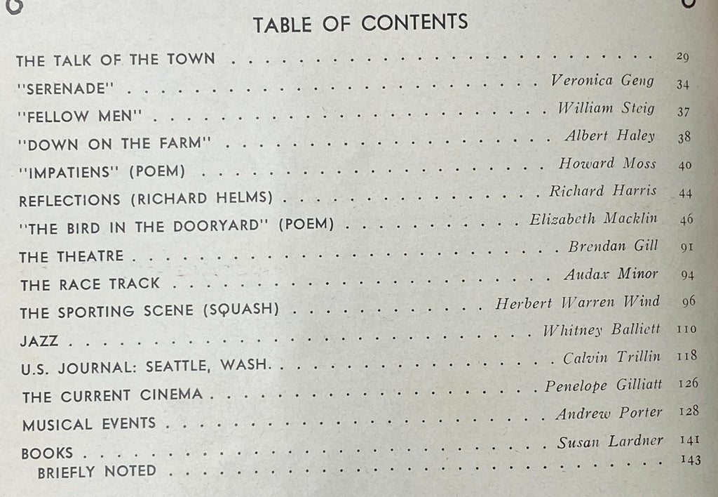 - “Serenade” by Veronica Geng - A thoughtful essay that embodies the magazine's literary quality