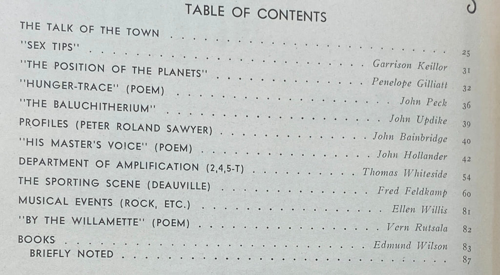 Inside, you will find a variety of articles that cover a multitude of fascinating topics, from the positioning of the planets by Penelope Gilliatt to entertaining stories like “THE BALUCHITHERIUM” by John Updike. This magazine also includes a profile on Peter Roland Sawyer, insightful observations by Thomas Whiteside regarding the Department of Amplification, and much more.