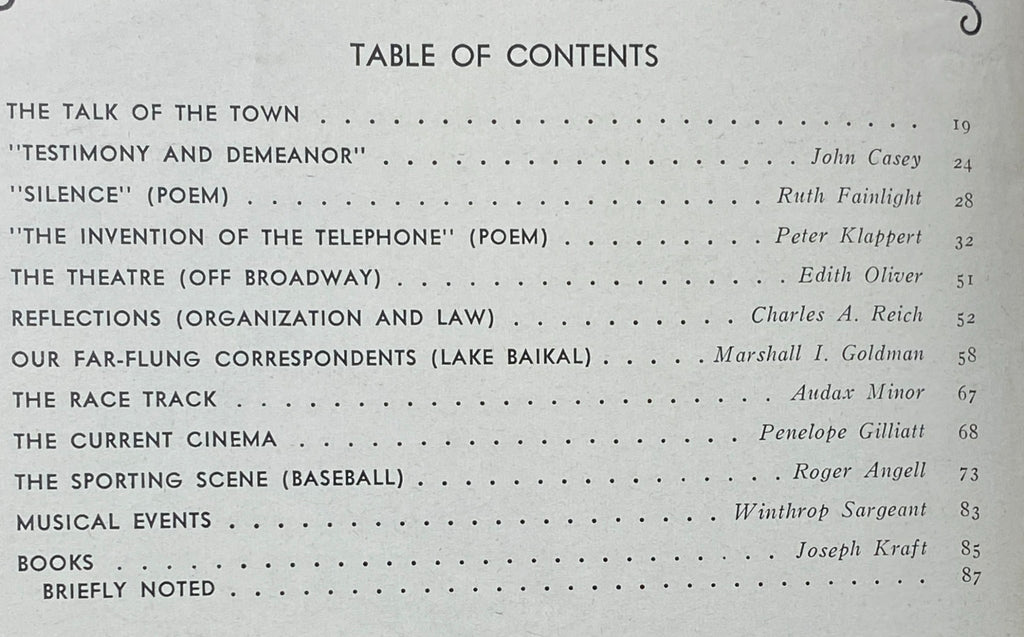 - "The Sporting Scene" (Baseball) by Roger Angell - A look into one of America's favorite pastimes through skilled commentary.