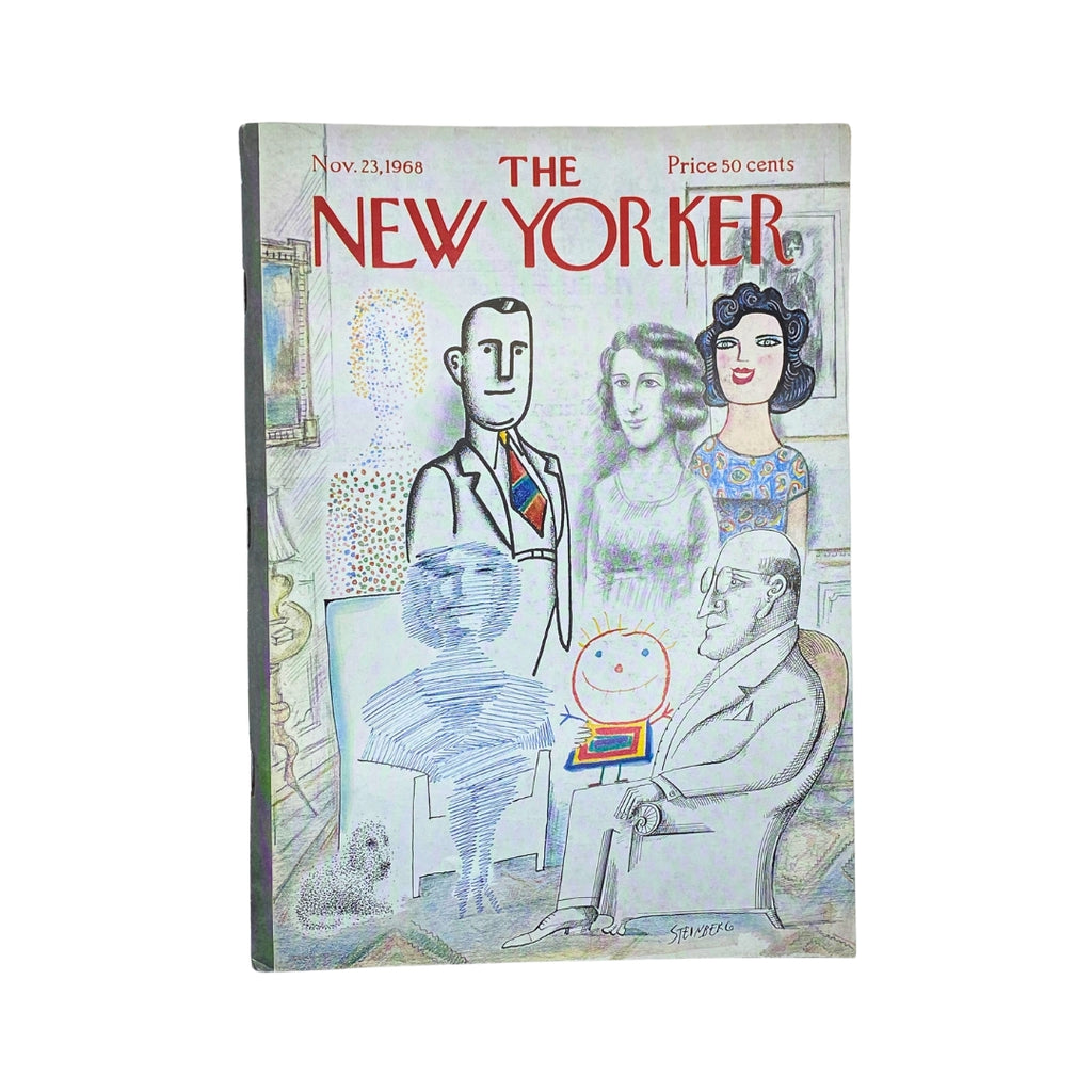The New Yorker Complete Magazine from November 23, 1968 features a stunning cover by the renowned artist Saul Steinberg. This vintage issue is a fantastic representation of the creative spirit of the late 1960s, capturing the essence of cultural commentary and artistic expression that the magazine is celebrated for.