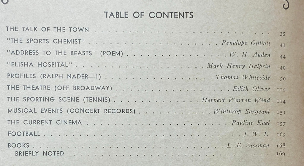 - Cultural Analysis: Discover the poetry of W. H. Auden with "Address to the Beasts," along with profiles featuring influential figures like Ralph Nader.