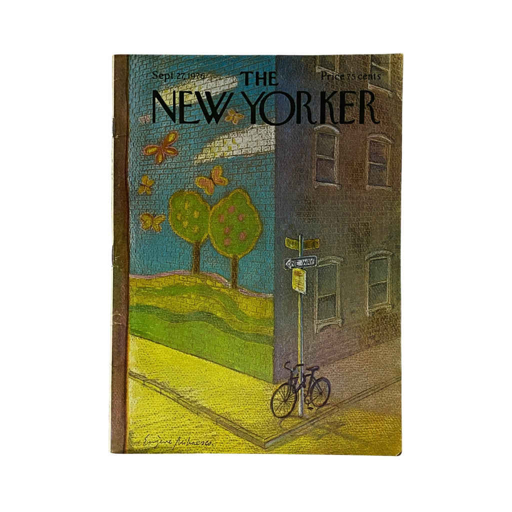 Discover a historical gem with the New Yorker Complete Magazine from September 27, 1976, featuring a captivating cover by the talented artist Eugene Mihaesco. This vintage issue holds a special place in the hearts of collectors and fans of classic literature alike. The magazine is in very good condition, considering its age and is sure to provide a delightful reading experience.