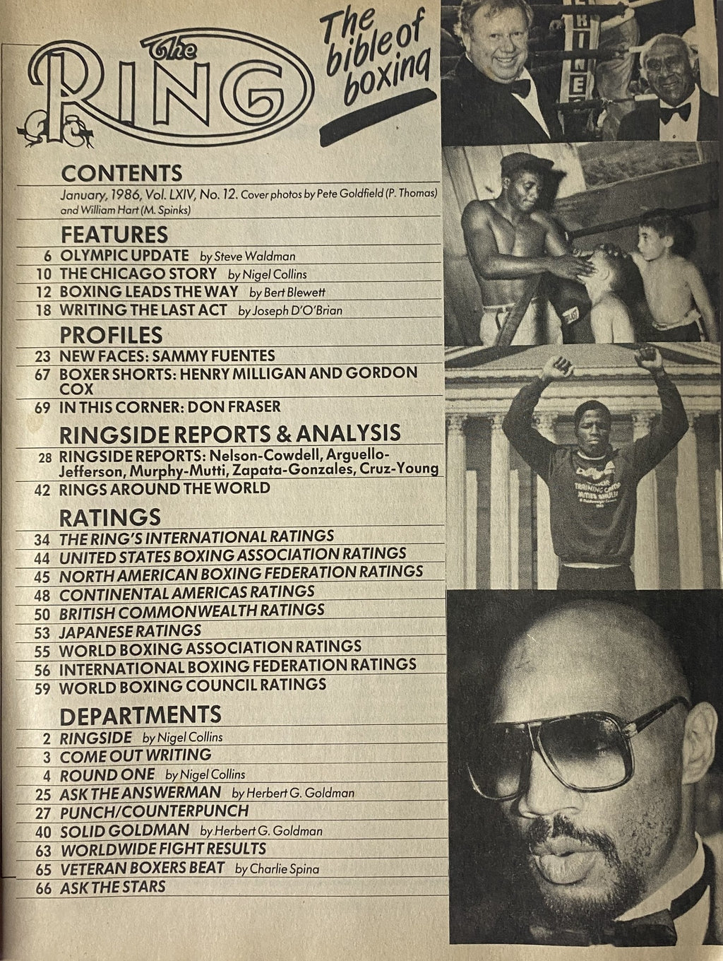 The Ring Magazine – January 1986 (Pinklon Thomas & Michael Spinks Cover, No Label, Very Good Condition)