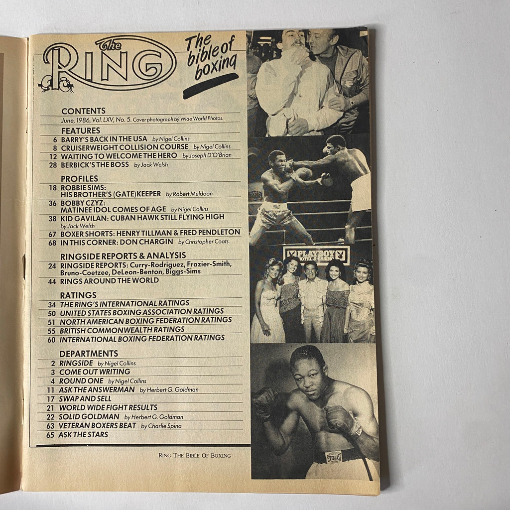 This June 1986 issue of The Ring Magazine features featherweight sensation Barry McGuigan on the cover as he brought his charisma and championship reign to the U.S. spotlight. Alongside McGuigan’s feature story, this issue covers cruiserweight contenders, profiles of top fighters like Bobby Czyz, Robbie Sims, and Kid Gavilan, and a mix of ringside reports from major bouts of the mid-1980s.