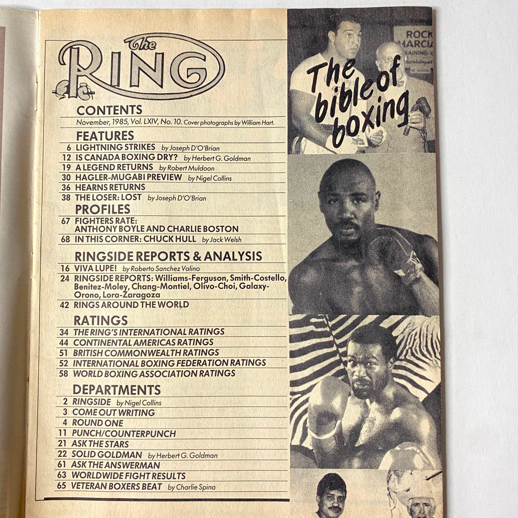 The Ring Magazine – November 1985 (John Mugabi & Marvin Hagler Cover, No Label, Very Good Condition)