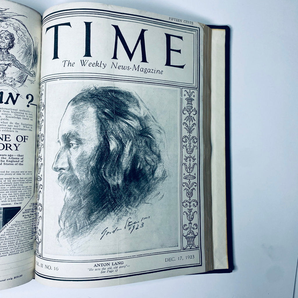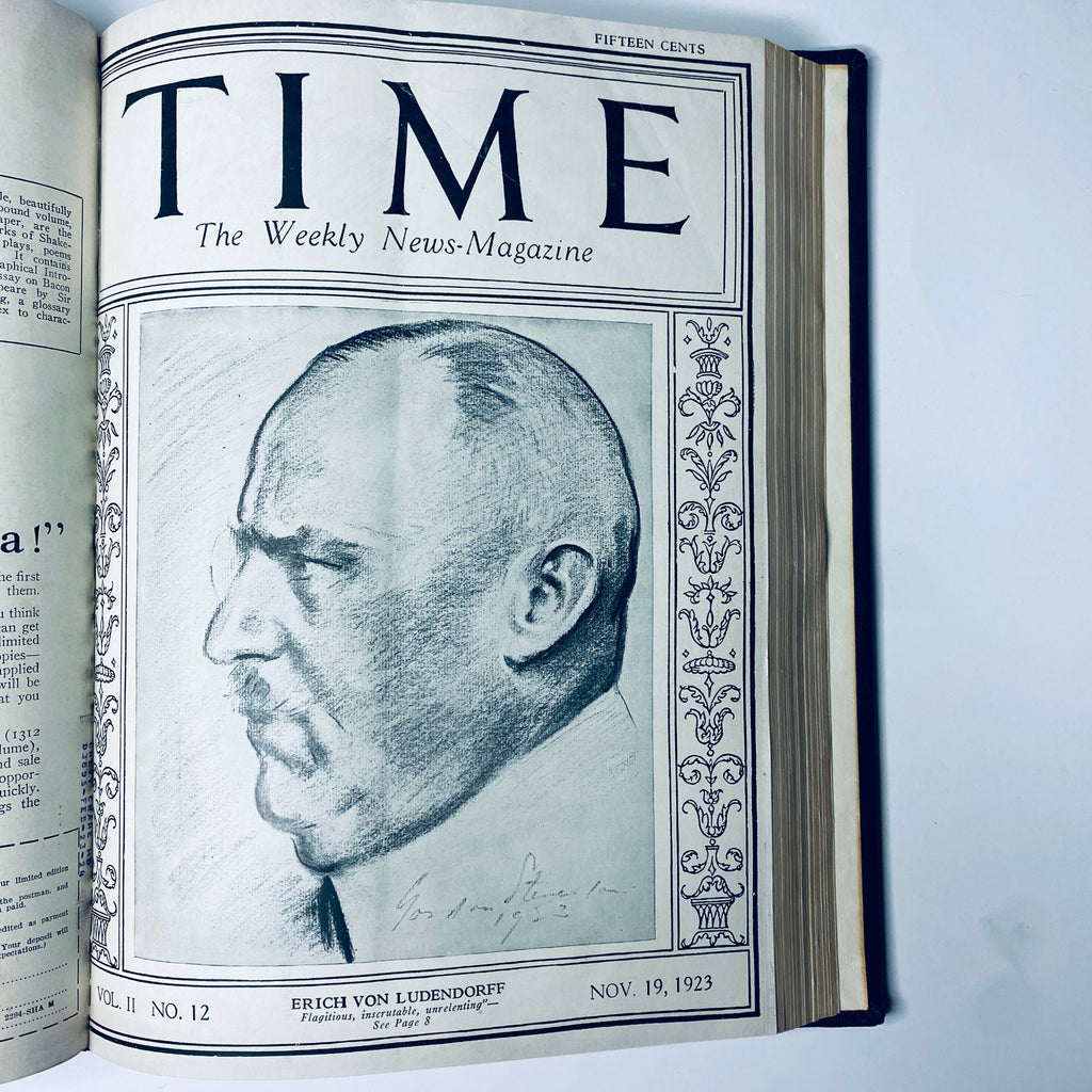 This listing features an original Library Edition bound volume of Time Magazine, covering the complete weekly issues from September through December 1923. Professionally bound and originally held by Earlham College Library (as noted by the library stamp), this volume offers a compelling snapshot of early 20th-century political, cultural, and international developments as reported by one of America's most influential news magazines.