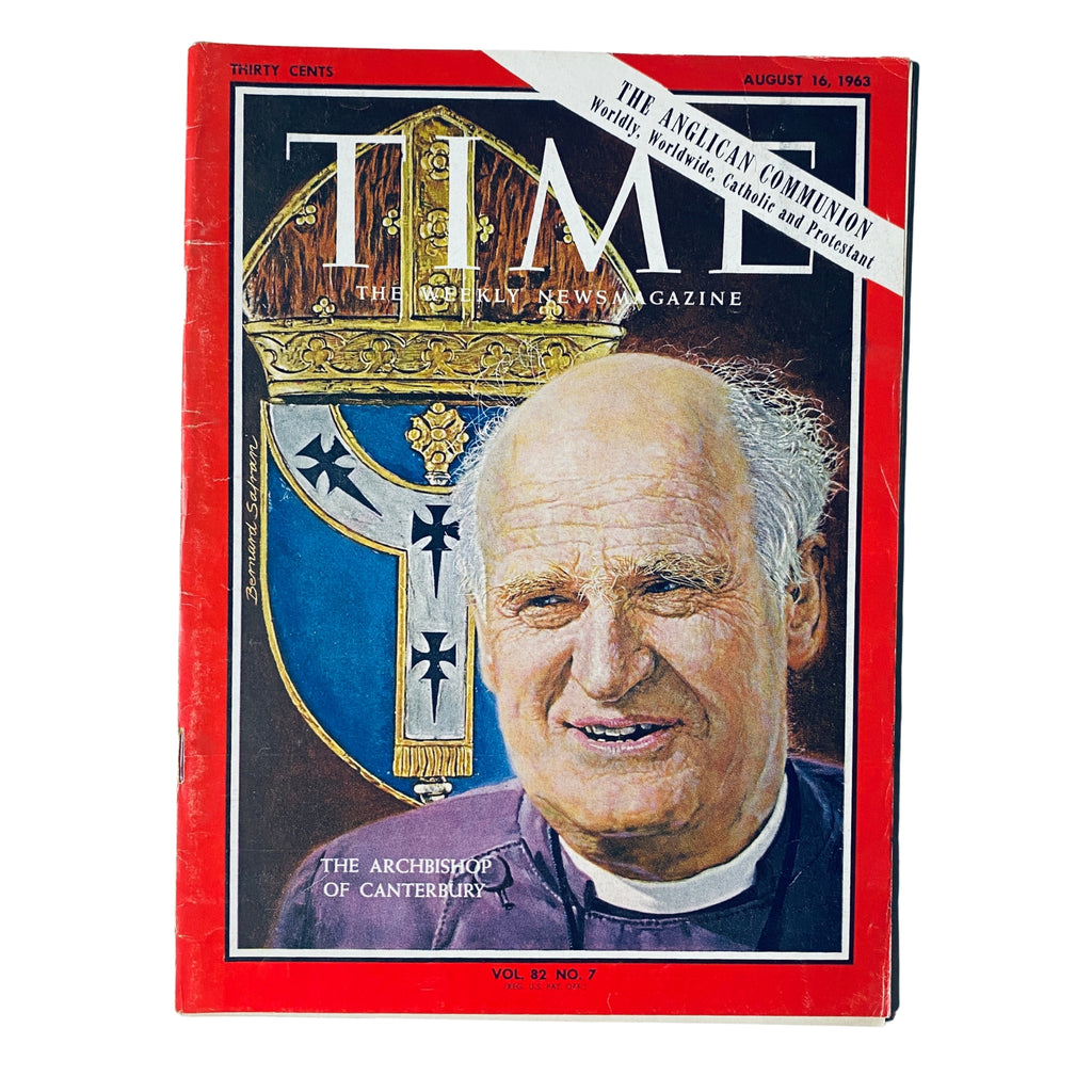 This vintage issue of Time Magazine, dated August 16, 1963 (Vol. 82, No. 7), features Michael Ramsey, the Archbishop of Canterbury, on the cover. A leading figure in the Anglican Church, Ramsey was known for his deep theological insight, commitment to ecumenical dialogue, and efforts to modernize the Church of England during a period of social and religious change. As Archbishop, he played a vital role in shaping the church’s voice on moral issues and promoting unity among Christian denominations worldwide.