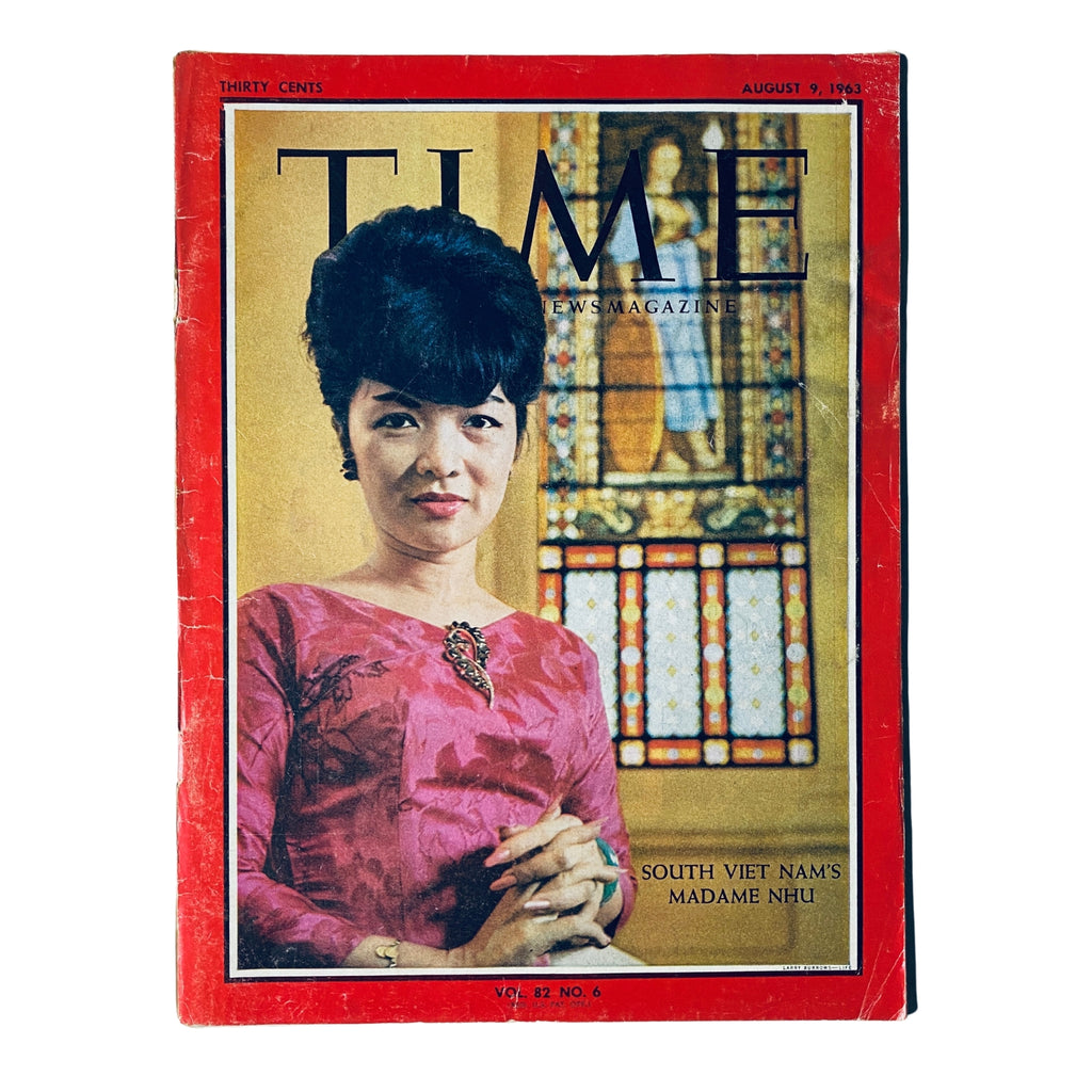 This vintage issue of Time Magazine, dated August 9, 1963 (Vol. 82, No. 6), features Madame Nhu, the de facto First Lady of South Vietnam, on the cover. Known for her outspoken and controversial remarks during the turbulent early years of the Vietnam War, Madame Nhu was a polarizing figure both domestically and internationally. As the sister-in-law of President Ngô Đình Diệm, she held considerable influence in Vietnamese politics and became a central figure in the growing unrest that would eventually lead to the regime’s downfall.