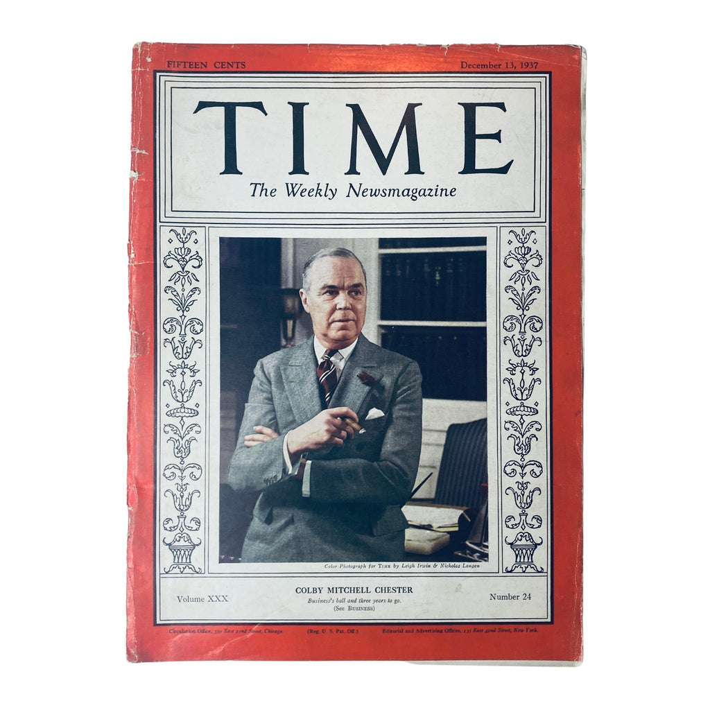 Time Magazine – December 13, 1937 – Vol. 30 No. 24 – Colby Mitchell Chester Cover