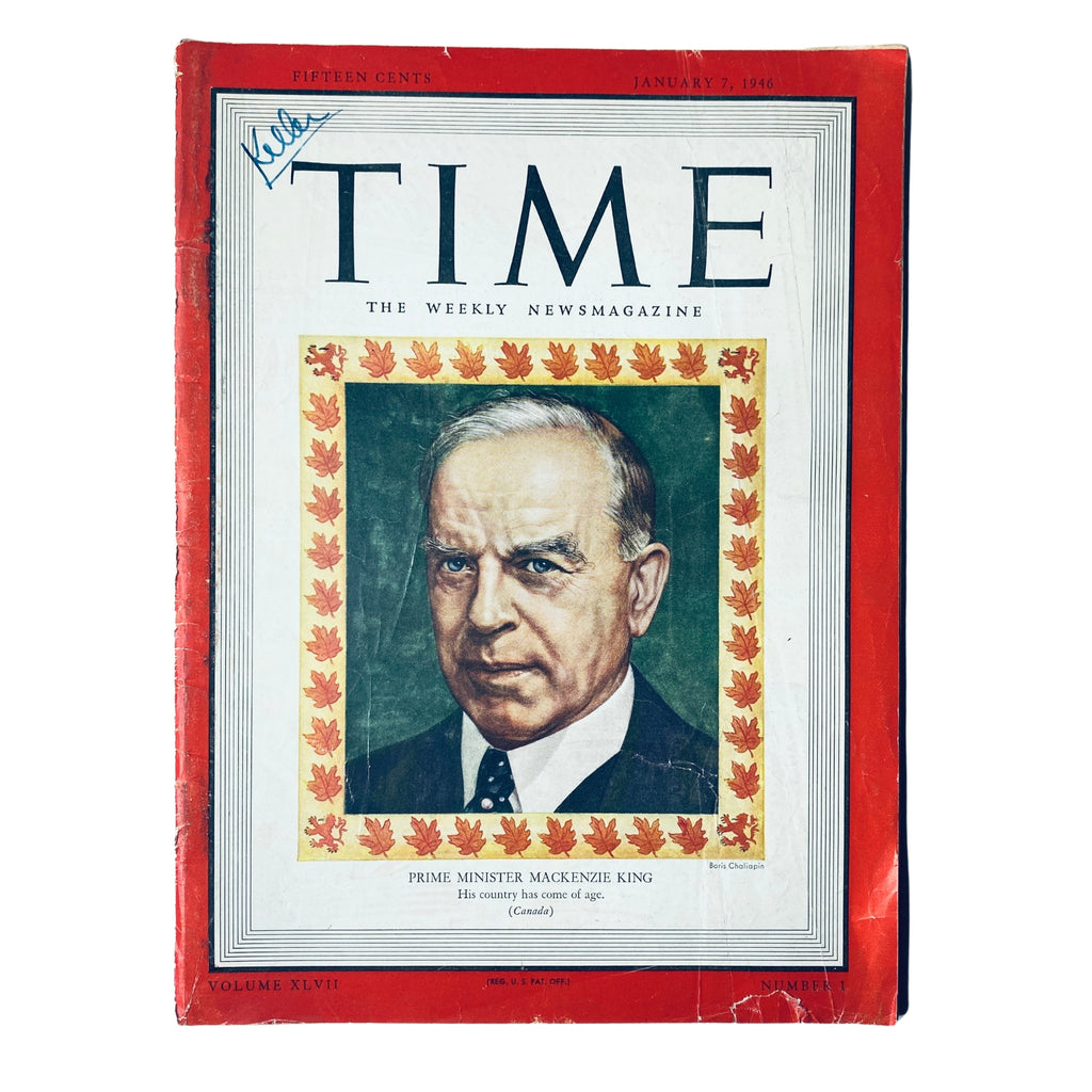 Time Magazine – January 7, 1946 – Vol. 47, No. 1 – Featuring William Lyon Mackenzie King