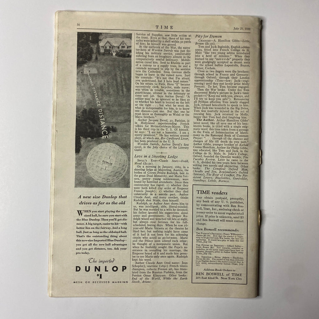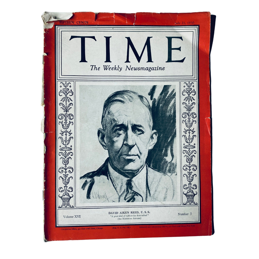 Time Magazine – July 21, 1930 – Vol. 16 No. 3 – David Aiken Reed – Missing Back Cover, Good Interior
