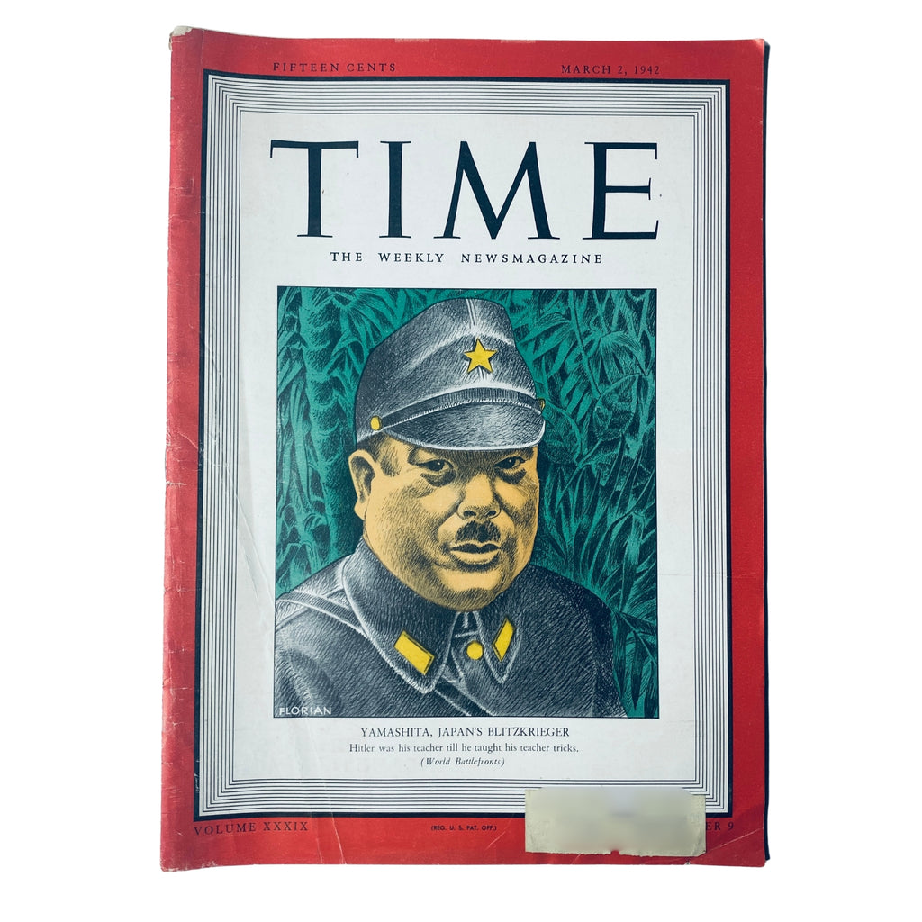 Time Magazine – March 2, 1942 – Vol. 39 No. 9 – General Tomoyuki Yamashita, Japan’s Blitzkrieger