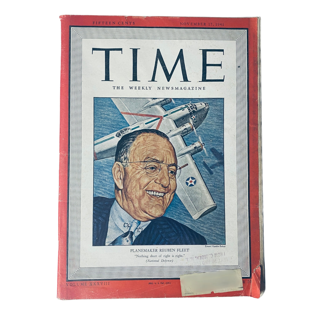 This original issue of Time Magazine, dated November 17, 1941, features Reuben H. Fleet, pioneering American aviation industrialist and founder of Consolidated Aircraft, on the cover. As the United States rapidly expanded its defense production ahead of entering World War II, Fleet’s company played a key role in building military aircraft—most notably the B-24 Liberator bomber. This issue offers timely coverage of Fleet’s influence on the aviation industry, wartime manufacturing, and America’s preparedness for global conflict.