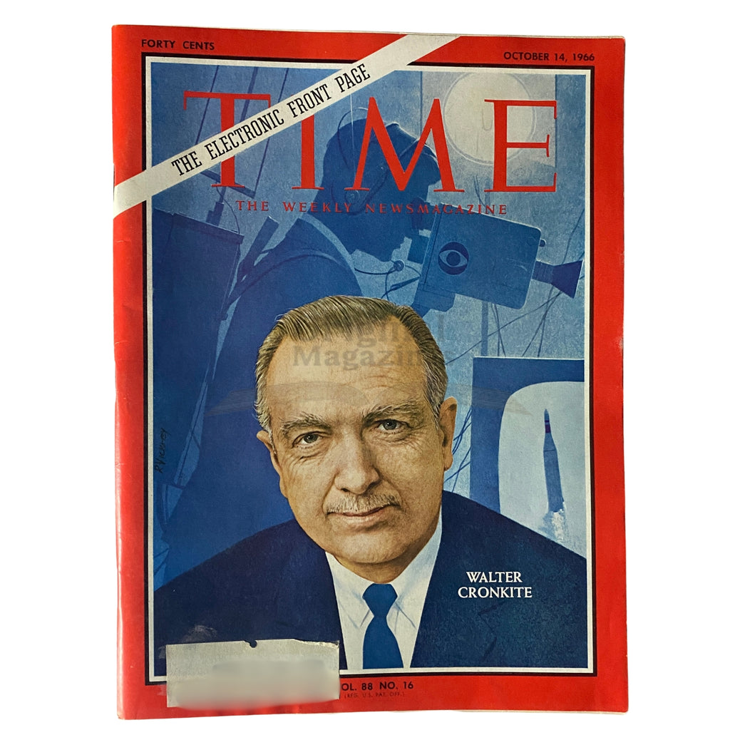 Discover a piece of history with the Time Magazine October 14, 1966, Vol 88 No. 16 featuring the legendary journalist Walter Cronkite on the cover. This vintage magazine provides a unique perspective on the events and cultural shifts of the 1960s.