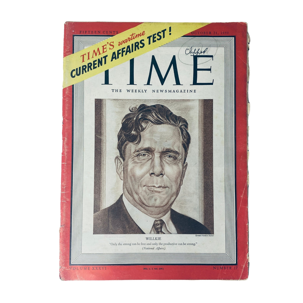 Time Magazine – October 21, 1940 – Vol. 36 No. 17 – Wendell Willkie (Good Interior)