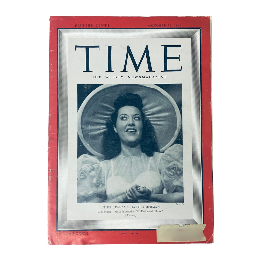 Time Magazine – October 28, 1940 – Vol. 36 No. 18 – Ethel “Panama Hattie” Merman