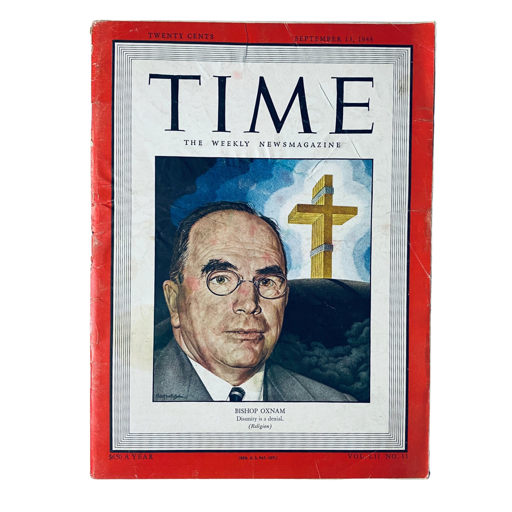 Time Magazine – September 13, 1948 – Vol. 52 No. 11 – Garfield Bromley Oxnam (Blurred Label, Good Interior)