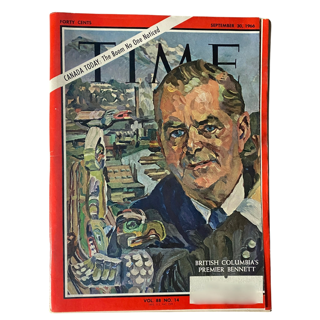 Discover a piece of history with the Time Magazine from September 30, 1966, featuring an insightful cover story on British Columbia's William Andrew C. Bennett. This collectible issue is more than just a magazine; it encapsulates a significant period in Canadian politics and history.