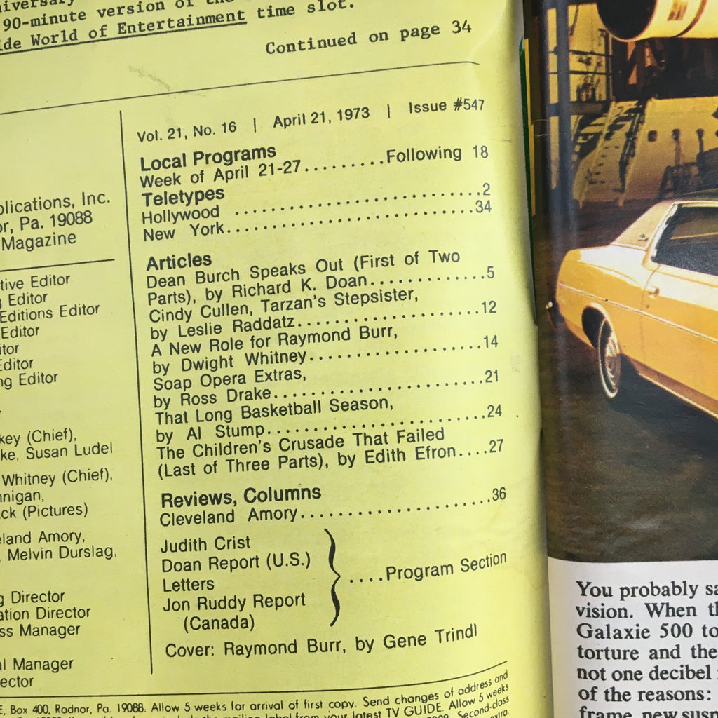 This particular issue captures the essence of a transformative era in American television. In 1973, television was evolving, and TV Guide was at the forefront, providing viewers with insights into programs that shaped the culture. Raymond Burr's portrayal of Pope John XXIII showcases not only his talent but also the impact of television on societal events, making this magazine not just a collectible but a historical artifact.