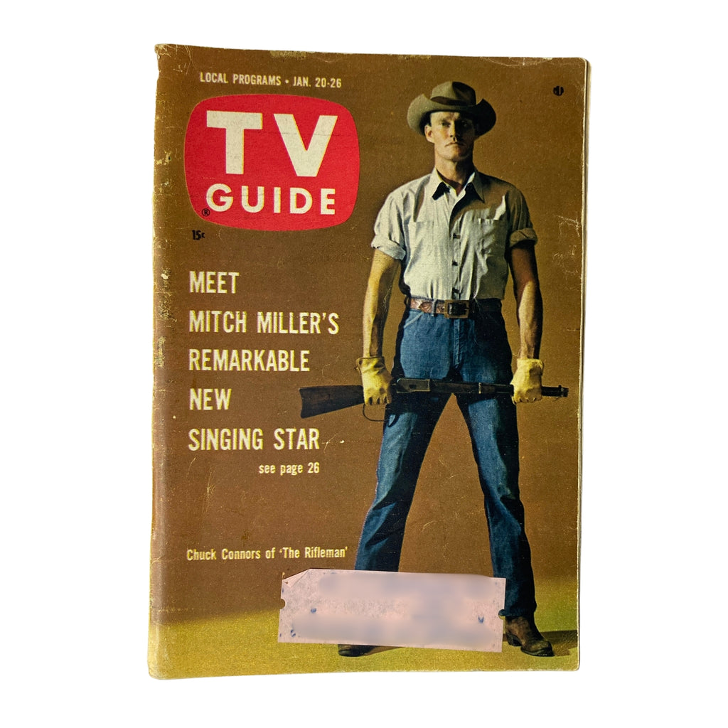 TV Guide Magazine – January 20, 1962 – Chuck Connors Cover – Pittsburgh Edition – Acceptable Condition (Good Interior, Back Page(s) Missing)