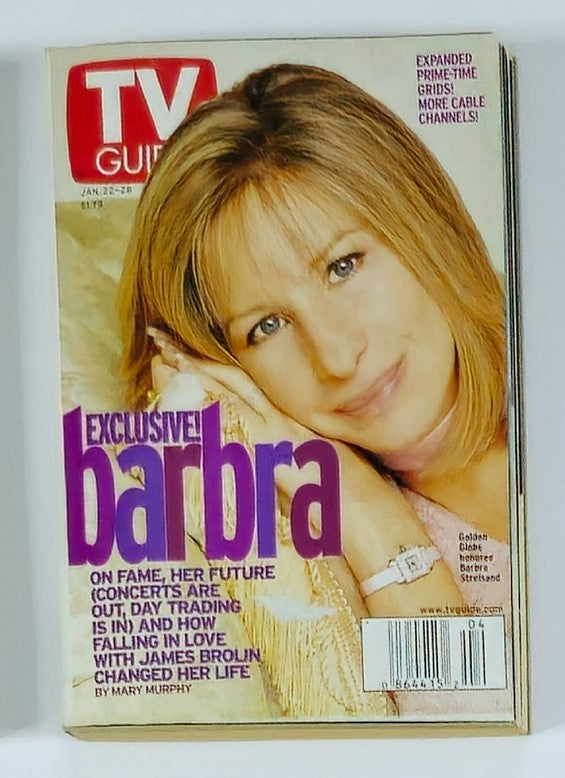 Explore the captivating world of vintage magazines with this collectible edition of TV Guide Magazine from January 22, 2000, featuring an iconic cover of the legendary Barbra Streisand. This particular issue is part of the New York Metro edition series and is without a label, making it a unique addition for collectors and fans alike.