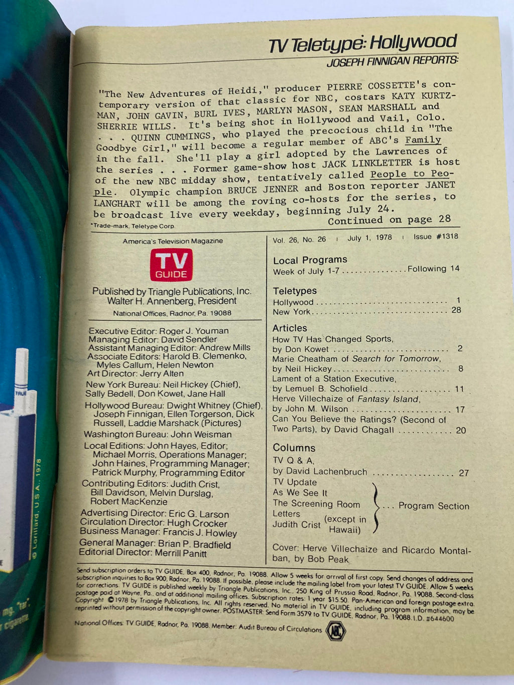 Step back in time with the incredible TV Guide Magazine July 1, 1978, featuring the charming and enigmatic Herve Villechaize on the cover. This special edition caters to the Western New England audience and offers a treasured glimpse into the television landscape of the late 1970s.