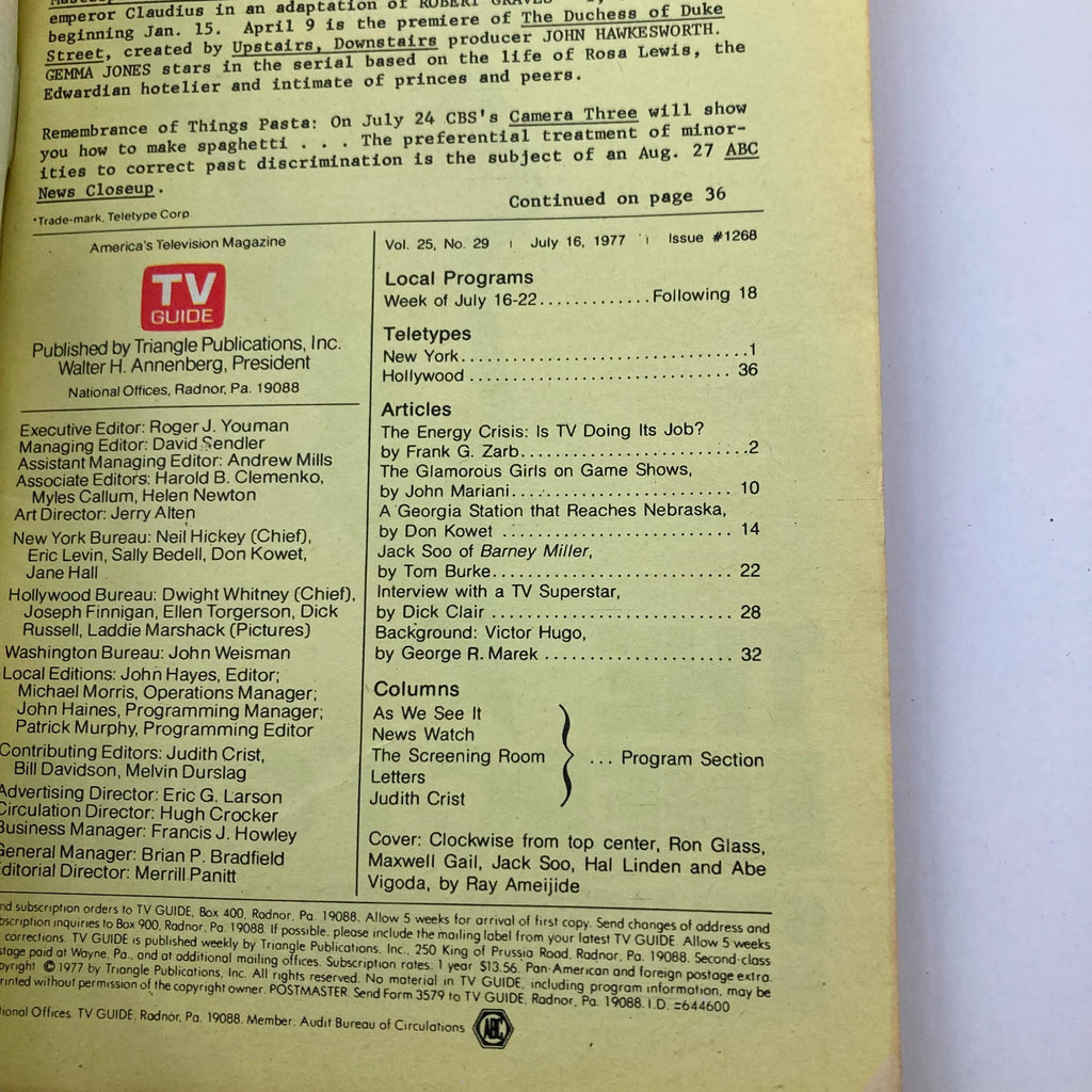 TV Guide Magazine July 16 1977 #1268 Barney Miller Cast New Hampshire Ed.