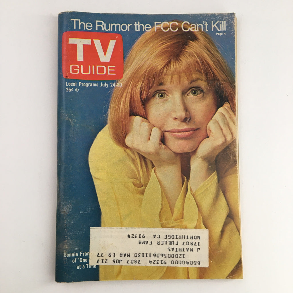 Step back in time with the iconic TV Guide Magazine from July 24, 1976, featuring the talented Bonnie Franklin on the cover, celebrated for her role in the hit series "One Day at a Time." This L.A. edition captures the charm of classic television and gives you a glimpse into the entertainment world of the 1970s.