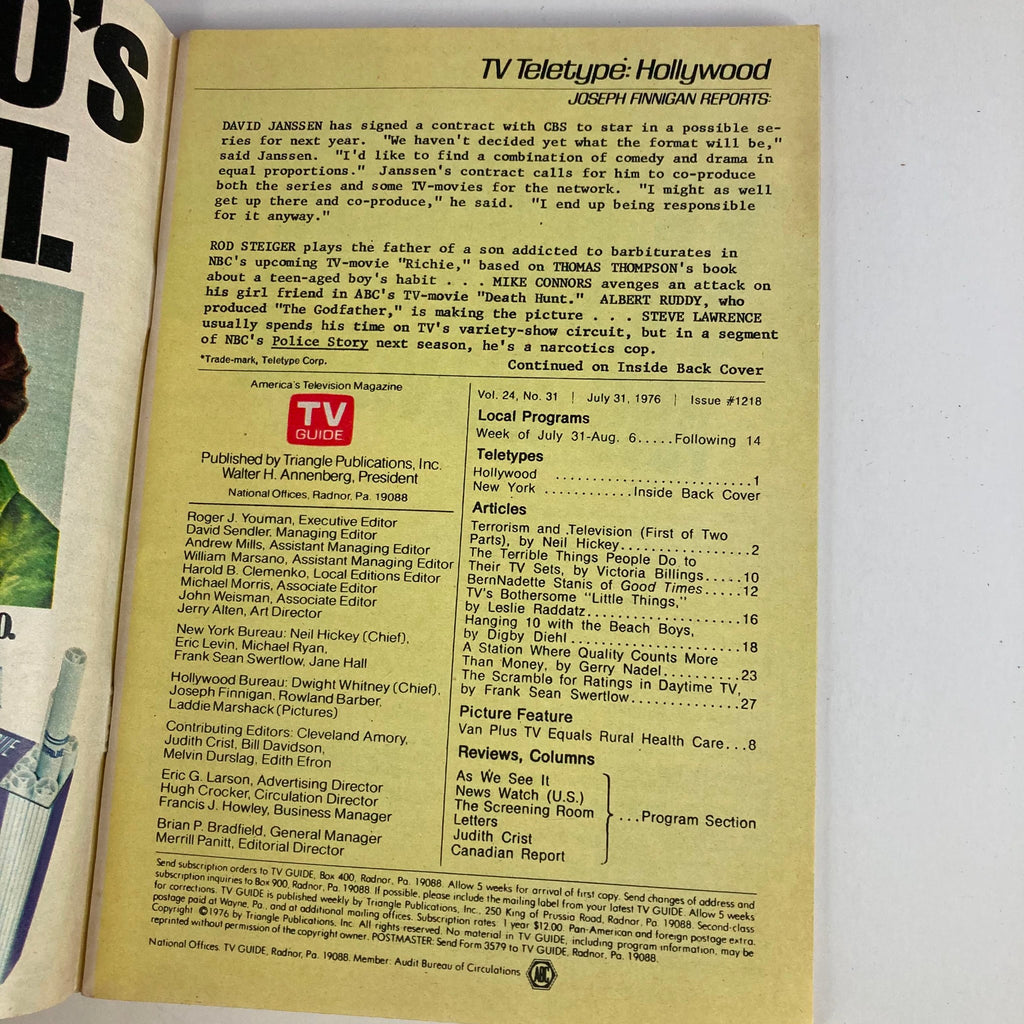 TV Guide Magazine July 31, 1976 #1218 - Terrorism and Television (New Hampshire Edition)