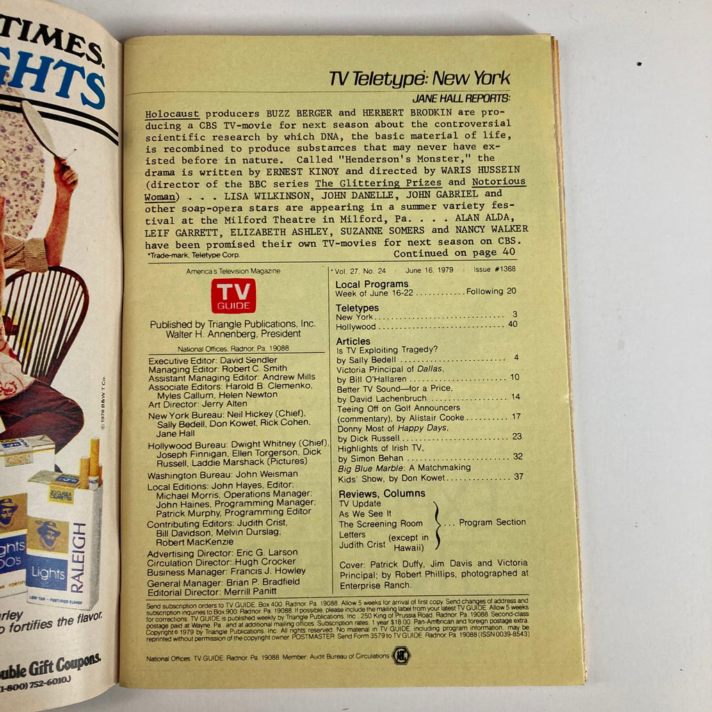Explore the TV Guide Magazine from June 16, 1979, issue number 1368 featuring the captivating stars Patrick Duffy and Victoria Principal. This vintage magazine offers a remarkable snapshot of television history, showcasing the charm and allure of the late 1970s. Its cover highlights the iconic duo known for their roles in the unforgettable series, Dallas, capturing the essence of a transformative era in American television.