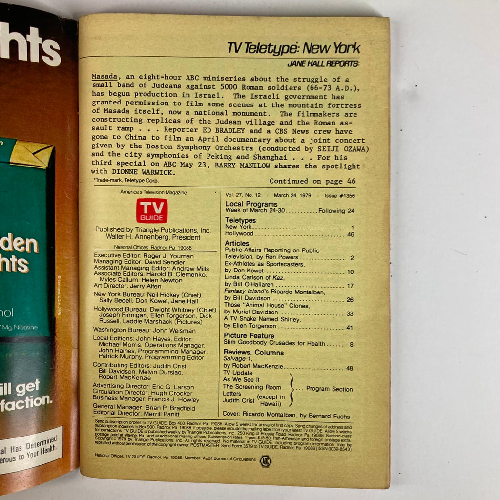 Discover the captivating TV Guide Magazine from March 24, 1979, issue number #1356, featuring the legendary Ricardo Montalban on the cover. This vintage magazine is a remarkable find for collectors and enthusiasts of vintage magazines.