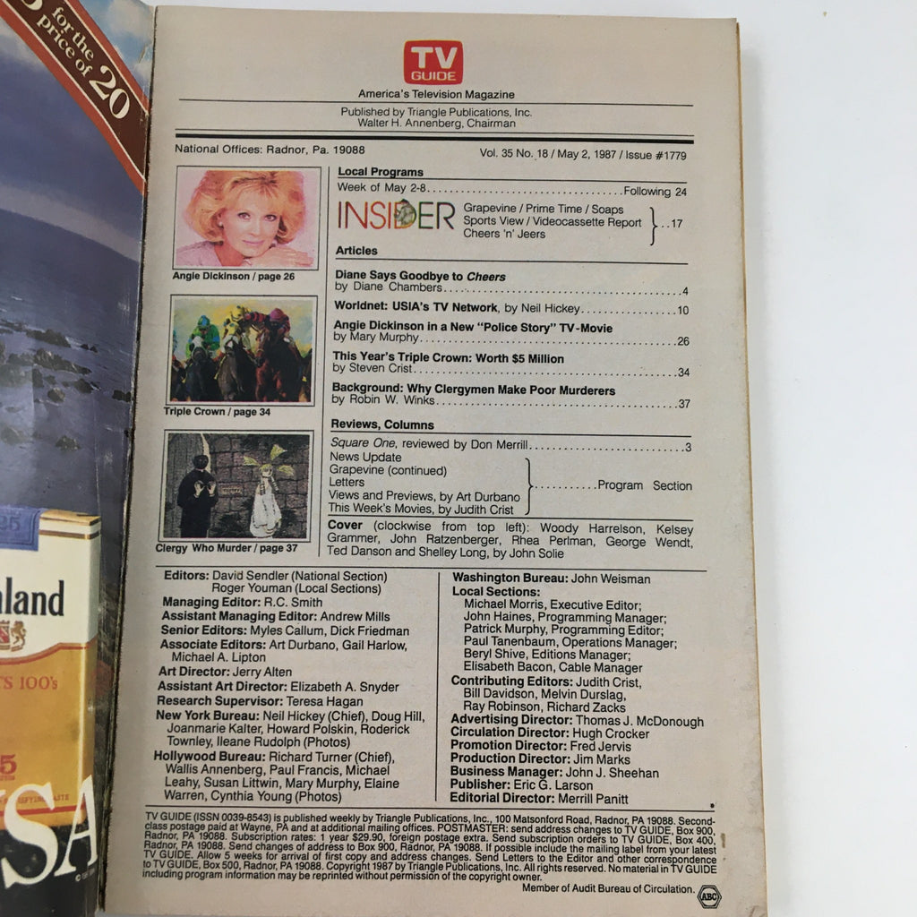 Discover a piece of television history with the TV Guide Magazine May 2, 1987, featuring stars Woody Harrelson and Kelsey Grammer gracing the cover. This vintage magazine issue captures the essence of 1980s pop culture and offers insights into the television landscape of the time.