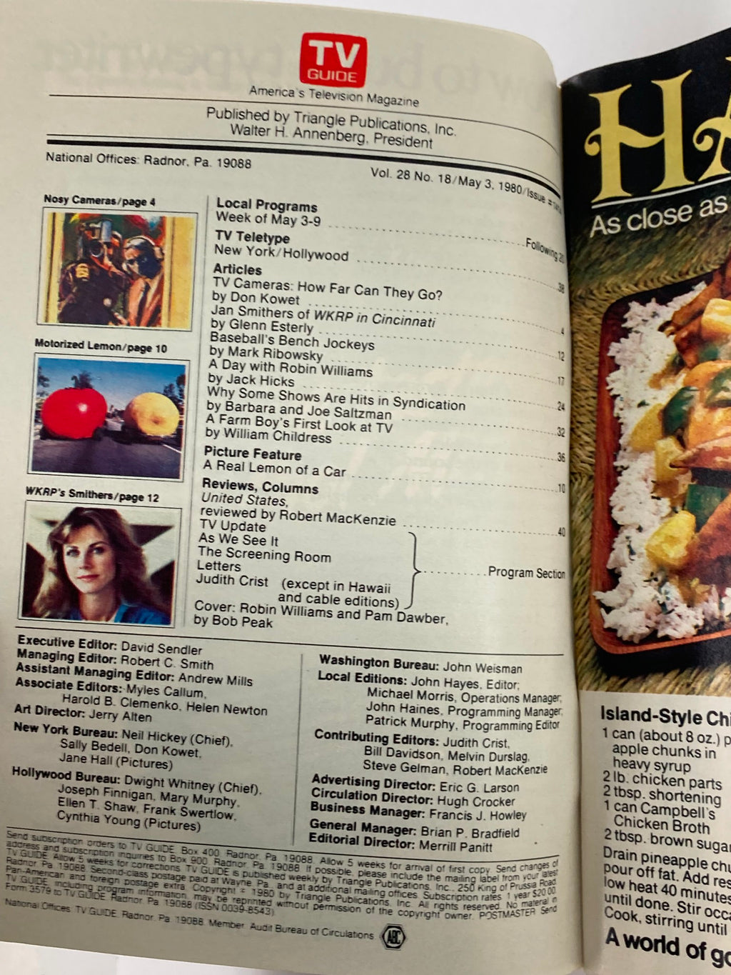 Discover a piece of television history with the TV Guide Magazine May 3, 1980, featuring the iconic comedian Robin Williams on the cover. This unique issue stands out as a true collectible among vintage magazines, providing a fascinating glimpse into the entertainment landscape of the era.