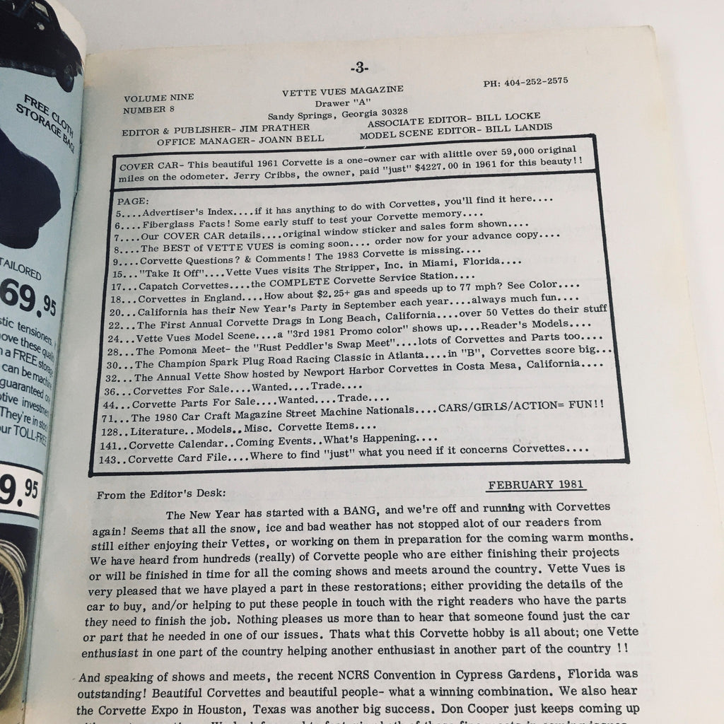 Vette Vues Magazine February 1981 Vol 9 #8 Atlanta Road Racing Classic, No Label