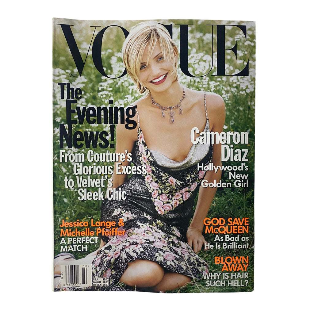 This vintage issue of Vogue Magazine from October 1997 features actress Cameron Diaz on the cover. Inside, the issue captures the style and cultural energy of the late 1990s, with in-depth fashion coverage, couture highlights, designer profiles, and celebrity features including Diaz, Alexander McQueen, and more.