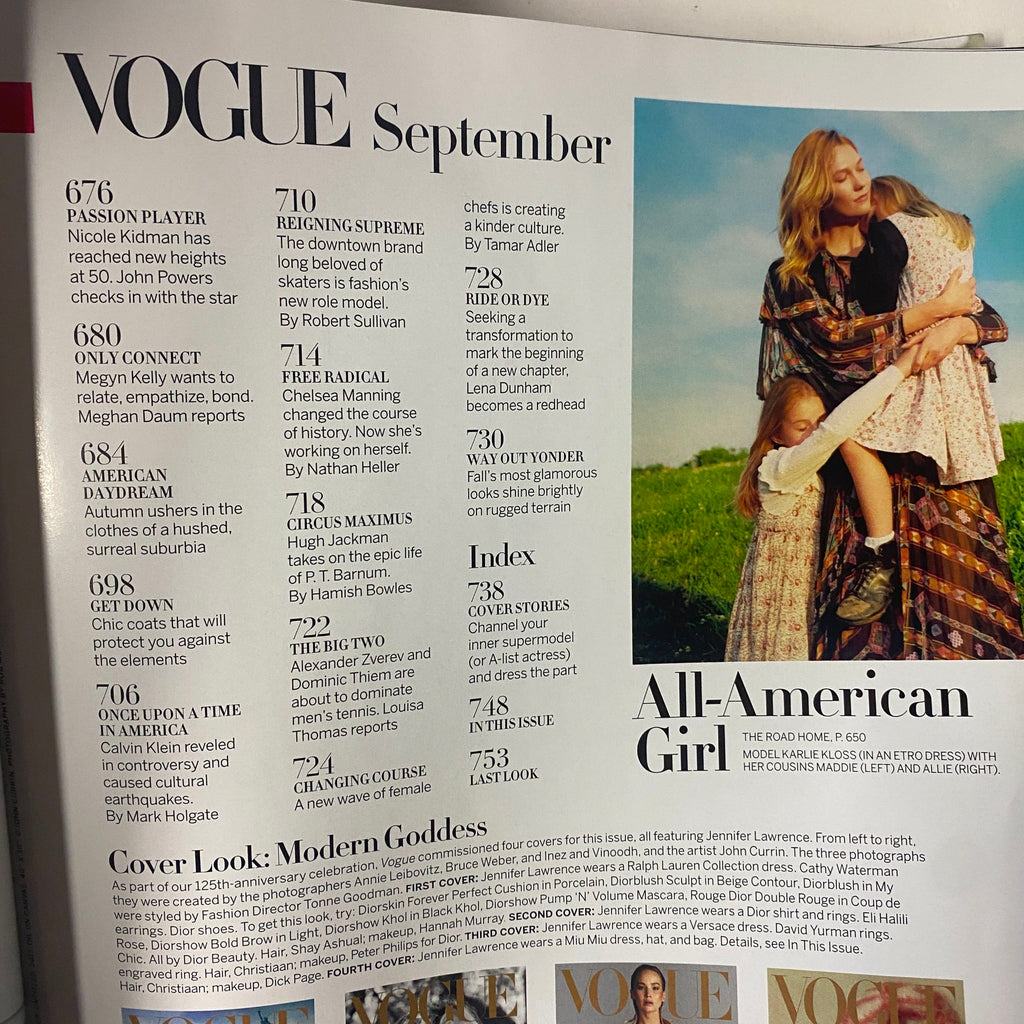 Vogue Magazine – September 2017 – Jennifer Lawrence Cover (No Label, Good Condition)