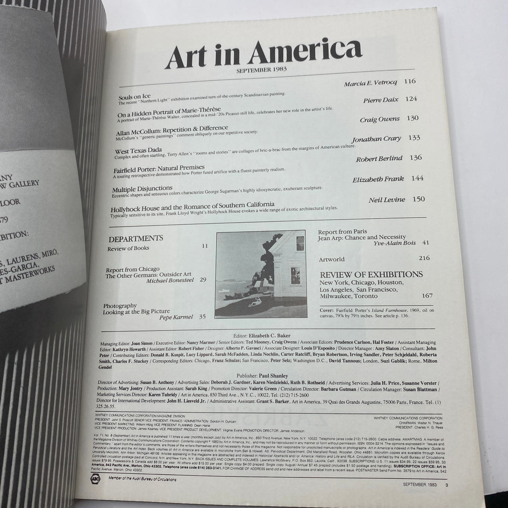Discover a collectible treasure with this Art in America Magazine, September 1983 Edition featuring a captivating cover story on the Island Farmhouse. This vintage magazine provides an insightful look into the world of art during the early 1980s, showcasing significant cultural shifts and artistic movements that define this era.