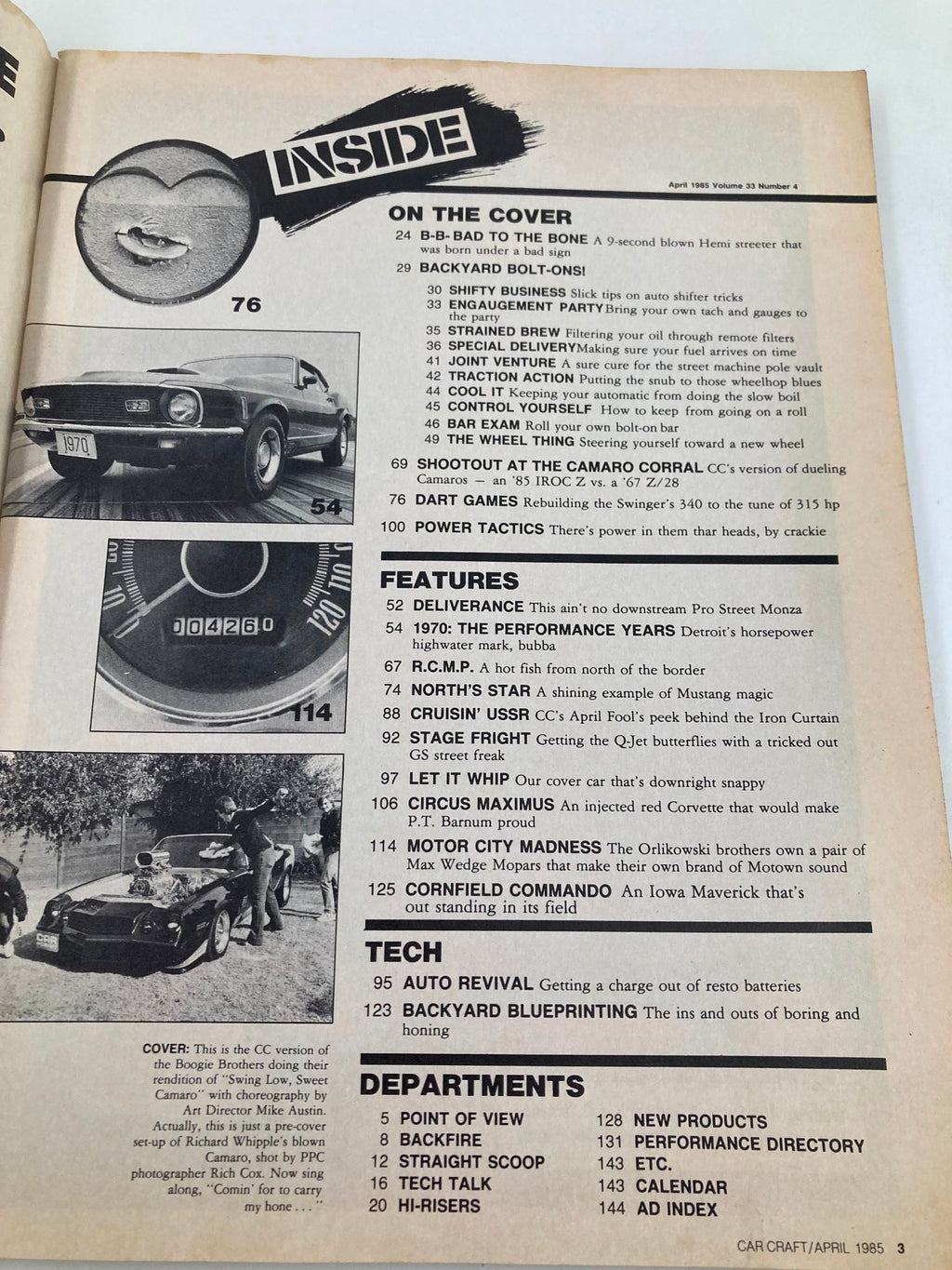 Celebrate the vibrant world of classic cars with this collectible issue of Car Craft Magazine from April 1985. This specific volume features the intriguing story of the Boogie Brothers, delving into the rich culture surrounding car customization and the artistry that defines classic auto enthusiasts.