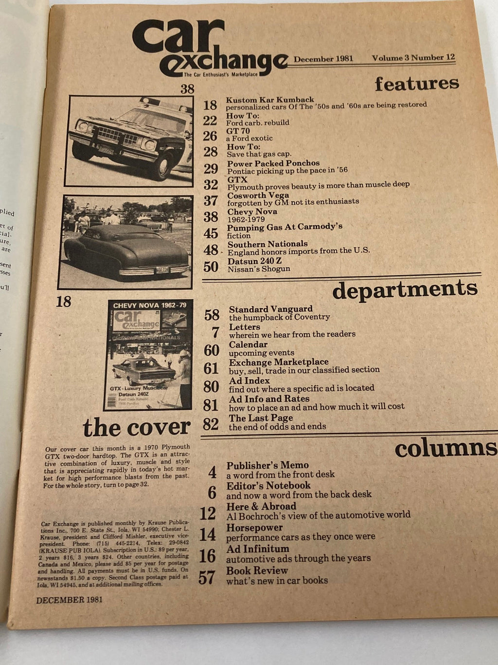 Step into the world of classic automotive culture with this collectible vintage magazine: Car Exchange Magazine, December 1981, Volume 3 Issue #12. This special edition is dedicated to the iconic GTX Luxury Musclecar, making it a must-have for enthusiasts and collectors alike.