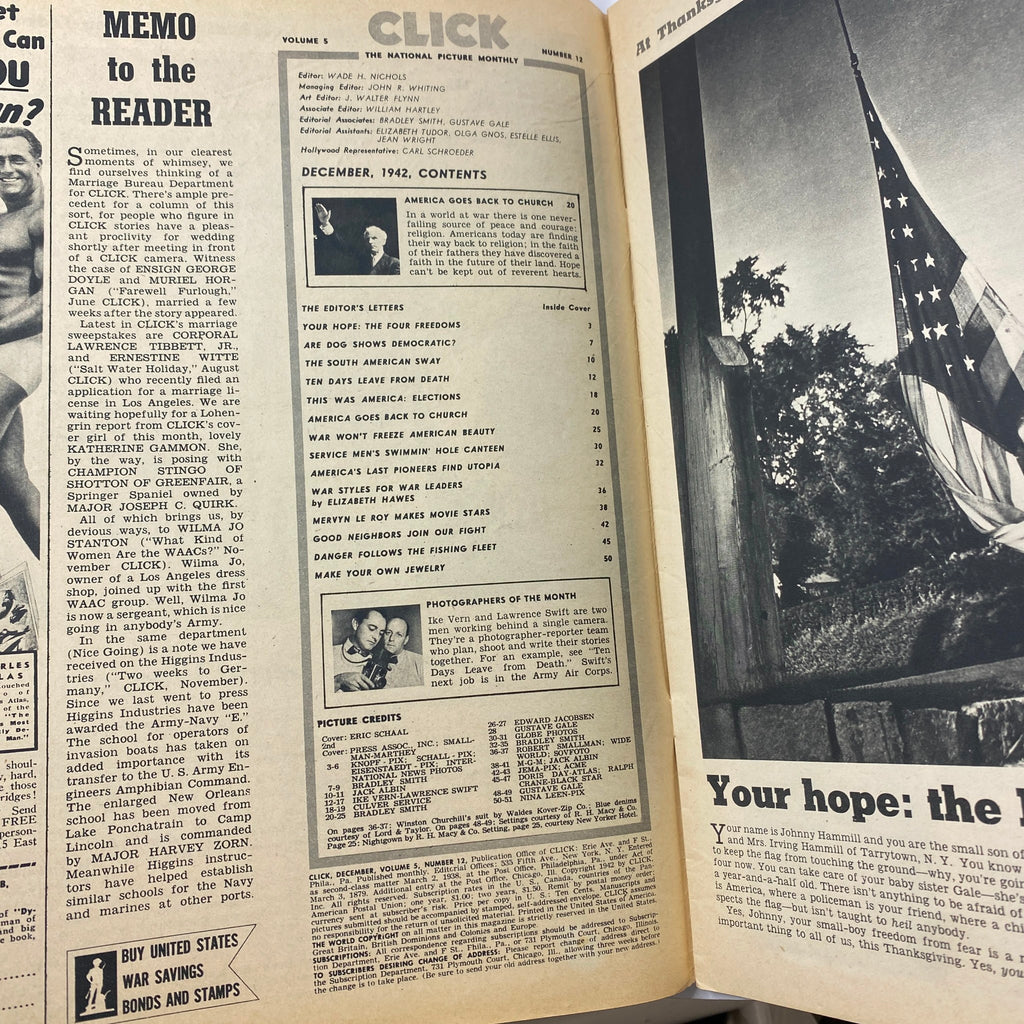 Discover a rare piece of history with the December 1942 issue of Click Magazine. This vintage magazine, published during World War II, features a thought-provoking article titled Are Dog Shows Democratic?, delving into the social and cultural themes of the era. As a collectible item from the early 20th century, it offers unique insights into American life during a pivotal moment in history.