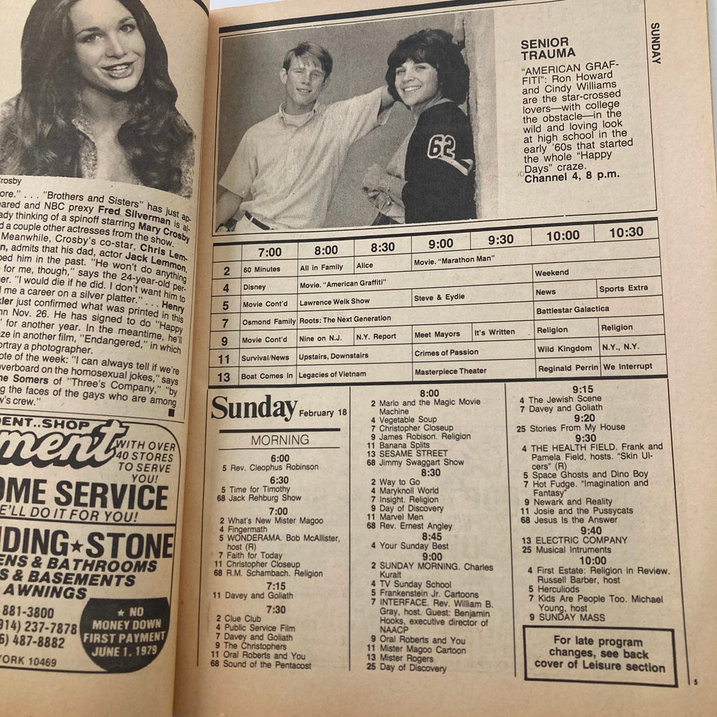 Step back in time with this vintage Daily News TV Week Magazine from February 18, 1979, featuring iconic personalities Stan Shaw and Alex Haley. This collectible magazine is a piece of television history, capturing the essence of a vibrant era in entertainment.