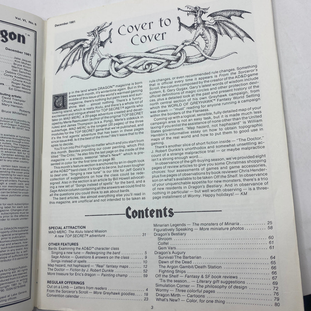 Discover the December 1981 issue of Dragon Magazine, a hallmark of vintage magazines that is perfect for collectors and tabletop gaming enthusiasts alike. This vintage issue, numbered 56, showcases the captivating theme: "Real Maps Are Best,” making it an essential addition to any serious collection.