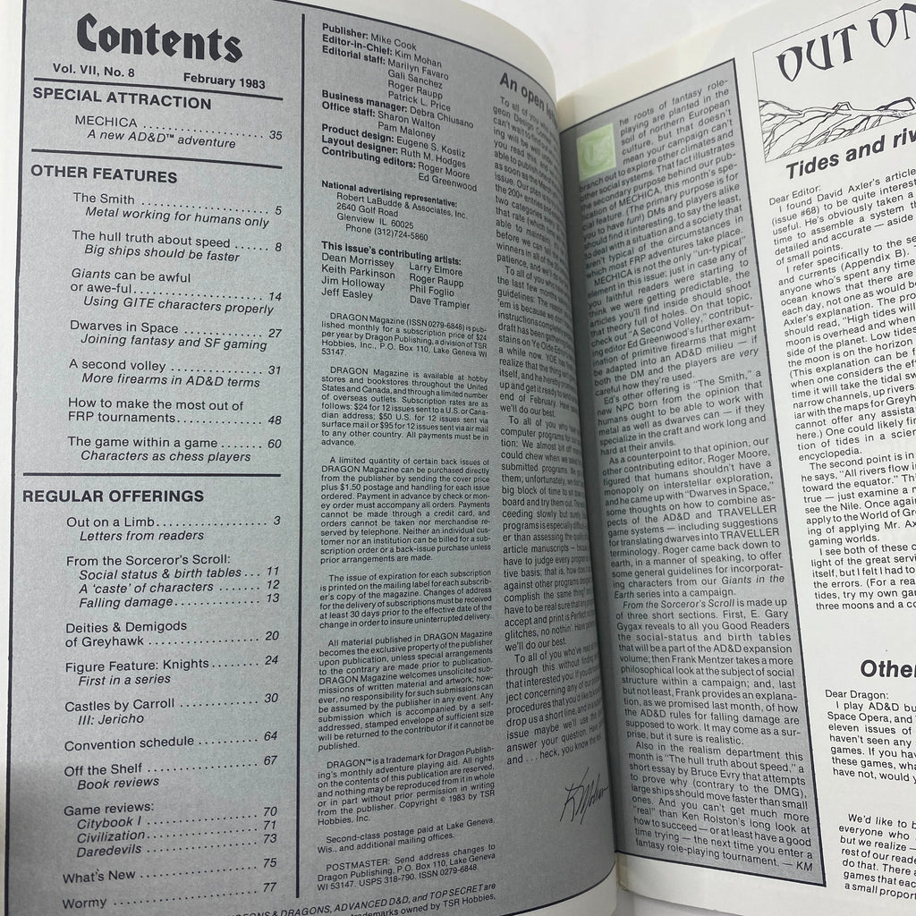 Explore the intriguing world of vintage magazines with this collectible Dragon Magazine, published in February 1983. This vintage issue, numbered 70, is known for its captivating cover story "The Hull Truth About Speed" which delves into the nuances of speed dynamics in tabletop gaming. With its iconic illustrations and engaging content, this magazine is a treasure for collectors and fans alike.