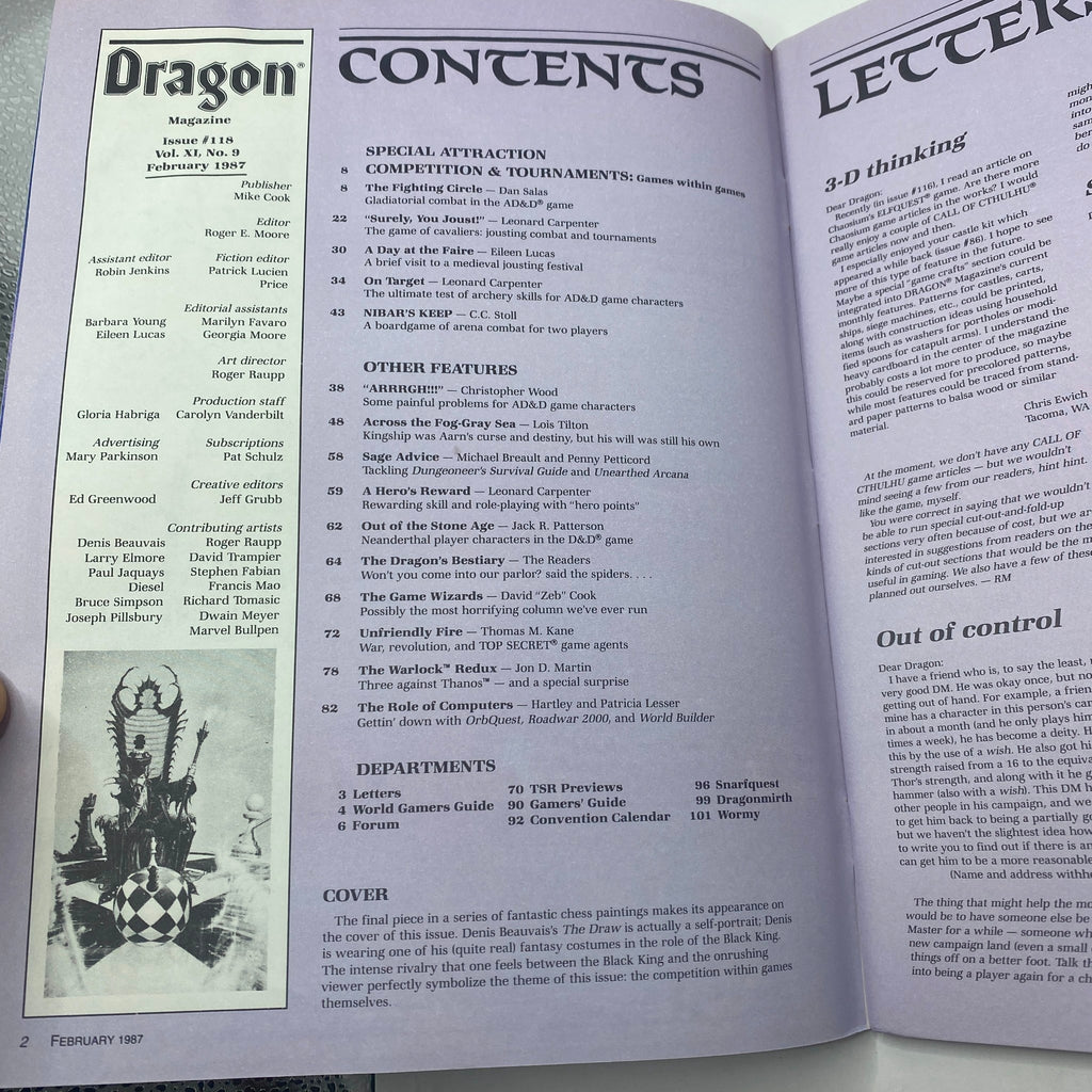 Discover a true gem among vintage magazines with the Dragon Magazine February 1987, No. 118, featuring the captivating cover art titled "The Draw" by the renowned artist Denis Beauvais. This collectible magazine not only showcases stunning illustrations but also dives deep into the realms of role-playing games and fantasy literature, making it a must-have for any enthusiast.