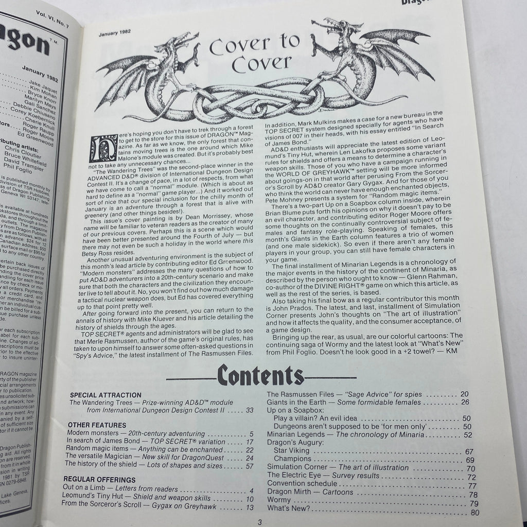 Discover a piece of gaming history with the Dragon Magazine, January 1982, Issue #57, featuring the enchanting tale of "The Wandering Trees." This vintage magazine is a must-have for fans of tabletop RPGs and collectors alike.